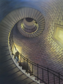 This symbolic "reach" plays out figuratively within walls of the gallery and on screens far and wide. Many of the selected works describe stories and metaphors that extend toward something; whether through the reaching out of arms, rays of light from screens, the reach of tree limbs, and stairwells that ascend to the unknown. The environment looms large with towering trees, the magnetism of the moon, or windchimes of seeds (which translated is a song that plays the future)!